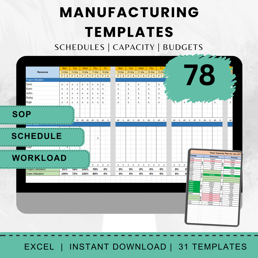 Manufacturing Templates for Manufacturing Production, Inventory Management, Production Control, and Production Capacity Planning